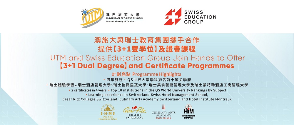 UTM and SEG Hold MOU Signing Ceremony on Cooperation in the Guangdong-Macao In-Depth Cooperation Zone in Hengqin On 3 December 2025, the Macao University of Tourism (UTM) and the Swiss Education Group (SEG) held a Read More