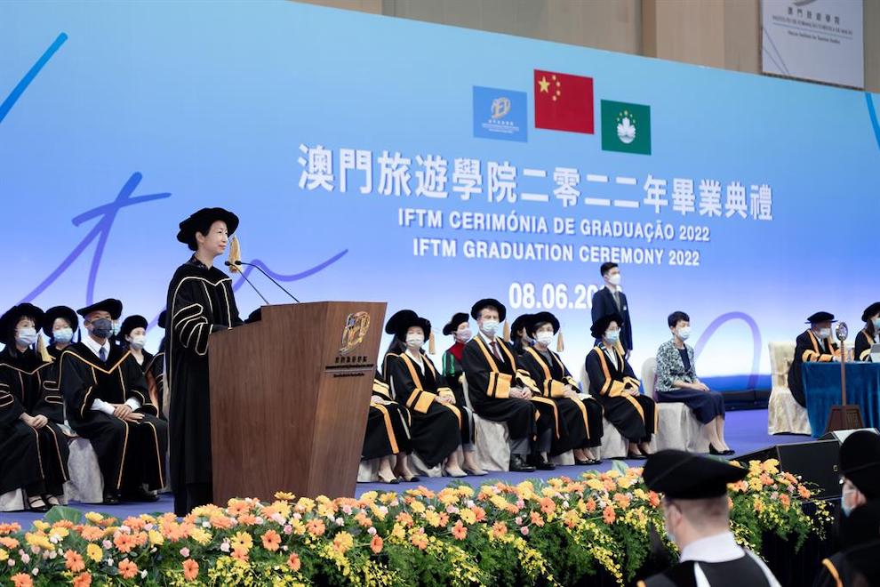 “The country’s 14th Five-Year Plan and the 2nd Five-Year Plan of the Macao SAR will lead us to progressive development”, she said in a speech delivered at the IFTM Graduation Ceremony 2022, held on 8 June at the Tap Seac Multisport Pavilion. A “promising future” was on offer, but, at the same time, there were “numerous challenges”, noted the Secretary.
