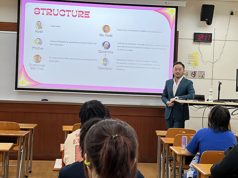 Desiree is a bar as well as a retail business in Macau organised by Mr. Sham. Mr. Sham is the second-runner-up in one of the biggest live-streaming competitions in China: Mango C-Anchor Challenge. The guest lecture addressed how to use creative marketing methods such as live streaming to enhance the distribution of the product. Mr. Sham also underpinned a few critical points in her presentation: ambush marketing and the golden rules for entrepreneurship.