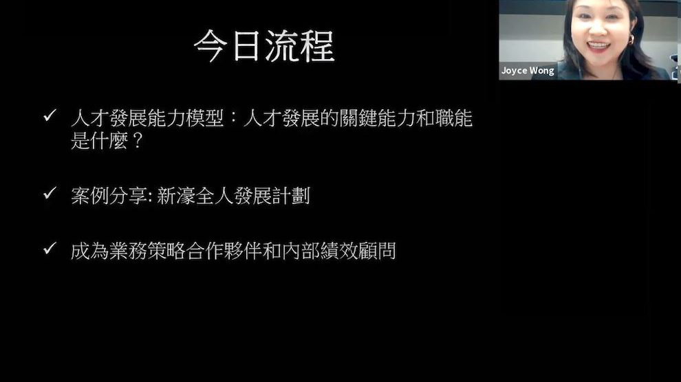 受學院副教授楊惠君的邀請,黃女士於6月17日透過雲端為學生介紹人才發展能力模型,解讀人才發展的關鍵能力與職能,同時,結合新濠全人發展計劃,與學生分享由專才至通才的培訓過程。此外,嘉賓闡述了人力資源在業務策略合作夥伴及內部績效顧問中的重要性,進而為整個綜合度假村帶來資源配置優化以及更高效的營運模式。