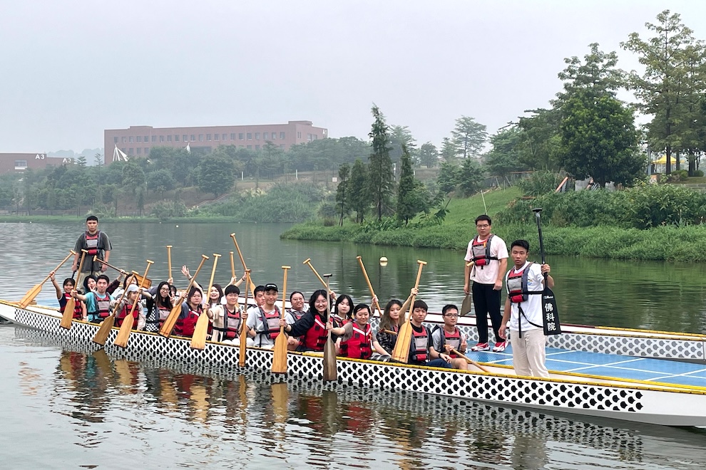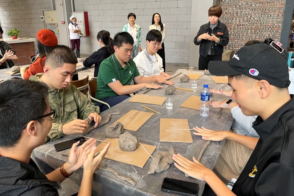 The group visited various places associated with ICH in Foshan, such as University Student Dragon Boat Training Base in FOSU, Foshan Ancestral Temple, Lingnan Xintiandi, Zhonglian Wong Fei-hung Dragon Boat Lion Dance Training Base and Chishan Village in Lishui County. Students learnt the origin and contribution of ICH to the cultural protection and development of the city, including the Dragon Boat Racing (Jiujiang Traditional Dragon Boat), paper cutting (Guangdong), Nanhai ash sculpture, Shiwan pottery sculpture craftsmanship, clay sculpture craftsmanship and Lion Dance (Guangdong). They also got a chance to learn how these ICH items are manifested in the tangible forms, as well as their current safeguarding measures in Foshan. They also got a chance to have hands-on experience with various ICH items in person, such as joining a dragon boat racing and experiencing the making of clay sculpture with the guidance from the masters.