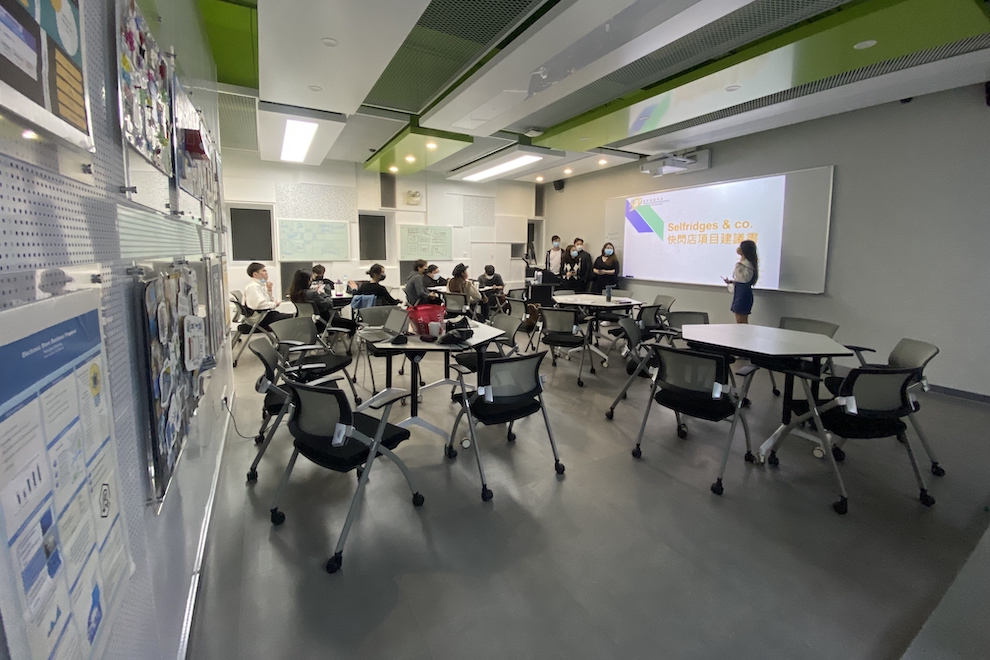 The course on Principles of Retailing is taught by IFTM Lecturer Ms. Belina Lei. Using the iRetail Lab and its associated multi-function room as teaching venues is useful for students, she says. It allows them to get practical experience in various processes in retailing, from using a POS system to managing product storage and transactions. “Even less-experienced students can easily adapt” and rapidly learn how to use the types of equipment at the lab, she says.