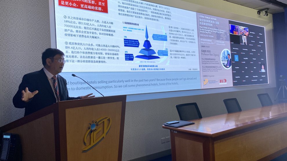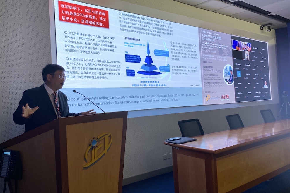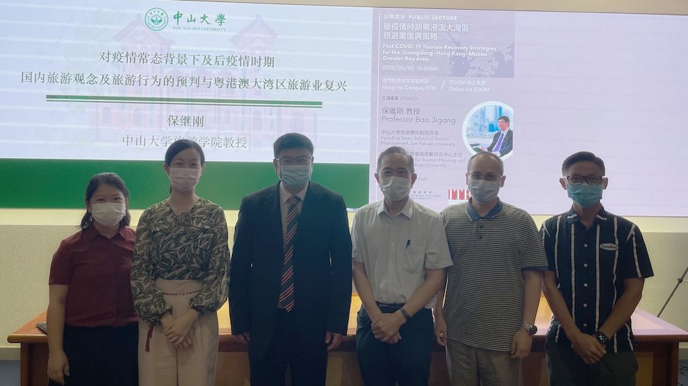 IFTM held on 2 June a public lecture on “Post COVID-19 Tourism Recovery Strategies for the Guangdong-Hong Kong-Macao Greater Bay Area”. The Institute invited as speaker Prof. Bao Jigang from Sun Yat-sen University, in neighbouring Guangdong Province.