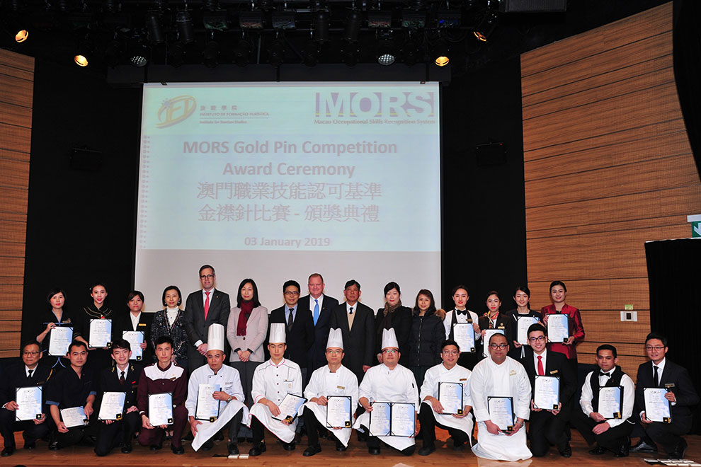 More than 360 tourism and hospitality front-line professionals put their expertise to the test in the 2018 Macao Occupational Skills Recognition System (MORS) Gold Pin Competition. The annual challenge organised by IFT is already in its 16th edition. The Award Presentation Ceremony was held on 3 January.