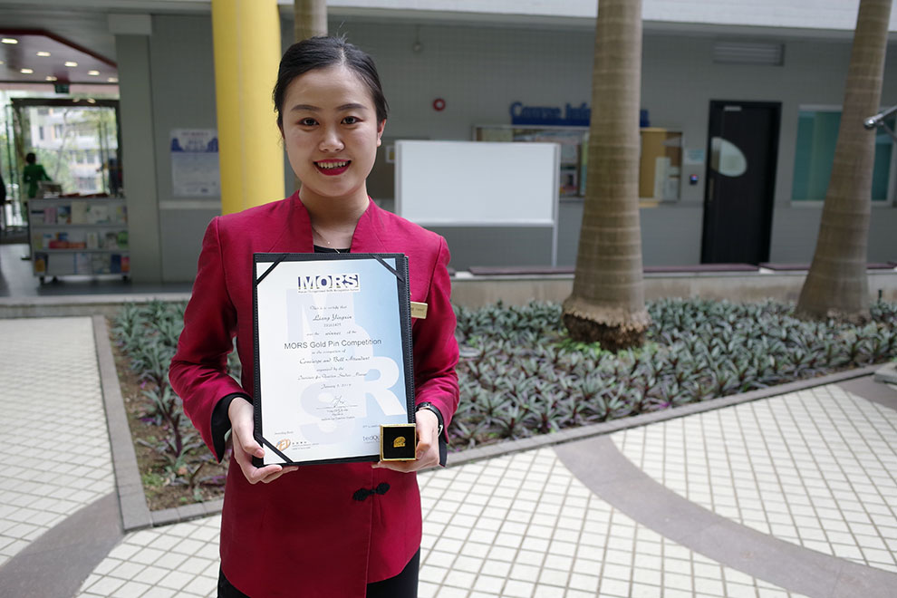 Ms. Liang has been working in the tourism industry for about 4 years. This was the second time she took part in the MORS Gold Pin Competition. In the 2017 edition, she did not go as far as the final round. “This competition has broadened my horizons; I could see how some outstanding peers do their job and learn from them,” she says following her latest participation.