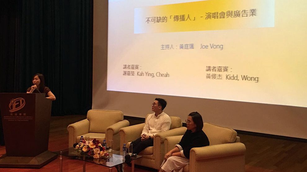 講座於12月19日舉行,邀請了來自馬來西亞具有大型演唱會籌辦經驗的謝嘉瑩女士,以及本地廣告業界經營者黃俊杰先生作為主講嘉賓。謝嘉瑩女士為馬來西亞藝人經紀公司Verny Management市場行銷總監,具有二十多年演藝人活動籌劃經驗,曾先後為韓國知名樂團BIGBANG、G-DRAGON、SEVENTEEN及WANNA ONE等在馬來西亞籌劃大型演唱會;黃俊杰先生是高山兄弟市場策劃有限公司總經理,在本地從事廣告傳播推廣工作逾十年,曾先後參與不少本地大型推廣活動及博覽會等。
