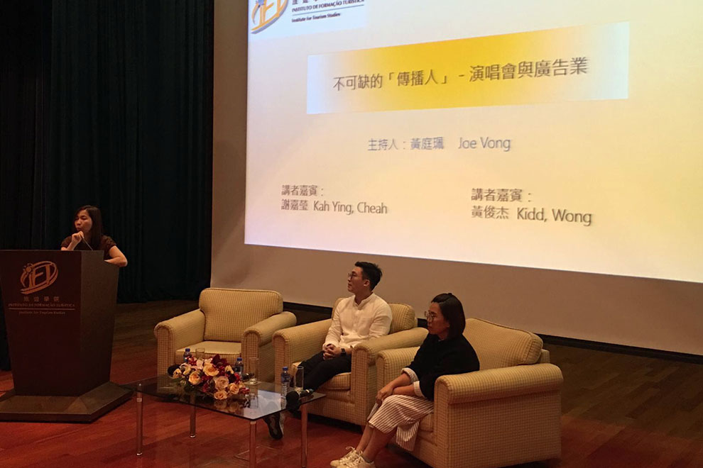在活動上,謝嘉瑩女士發表題為“來看我的演唱會─大型演唱會之煉成!”的演講,從場地選定、門票定價、銷售方式,至演唱會軟硬件配套等多方面,與學生分享籌備演唱會時需注意的事項。黃俊杰先生緊接著發表題為“澳門廣告業實況,你不可不知道!”的演講,闡述澳門廣告企業面臨的挑戰和機遇,其公司業務近年亦逐步向國內不同省市延伸。講座進行期間,學生積極發問並與兩位嘉賓互動,令活動在愉快的氣氛下圓滿結束。