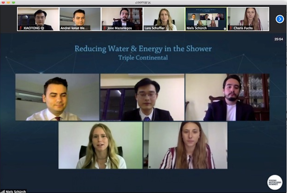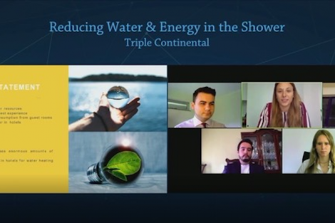 “Our group came up with the idea of fitting a water-usage tracker in the shower devices, to record water and energy consumption per room,” Qi explains. “The tracker was solar-powered and had a display monitor to show the water usage and energy employed for heating the water.”
