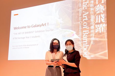 The tour was followed by an exchange session, moderated by Ms. Lam. She explained to students the goal and purposes for organising this kind of cultural exhibition. According to her, the Galaxy Entertainment Group Foundation aims, through the GalaxyArt Gallery initiative, to offer a platform to educate locals and visitors about local culture and art. Ms. Lam added that, as the gallery is located inside an integrated resort, it could reach different types of audience, having an important role in promoting cultural heritage to the general public, through themed exhibitions.