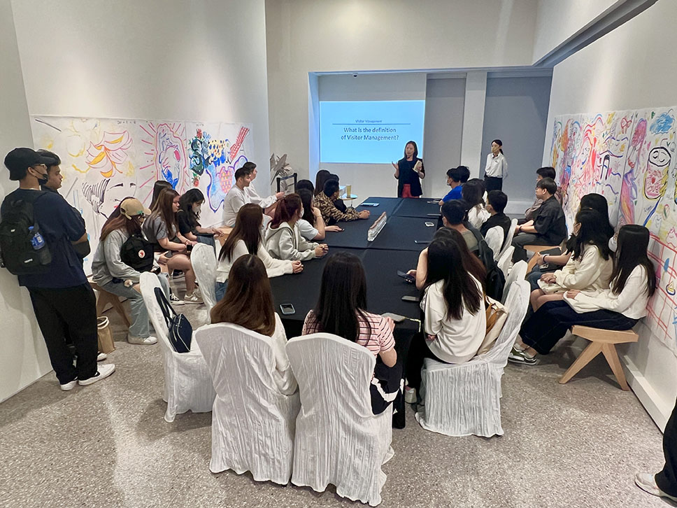 The docents were followed by seminars moderated by Ms. Florence Lam, the Gallery Manager at GalaxyArt. The seminar was about three main aspects of visitor management: safety, crowd control, and interpretation. As part of the seminar, Ms. Florence Lam mentioned that GalaxyArt emphasises raising awareness of arts and culture in societ and provides educational workshops and docents for the students in Macao.