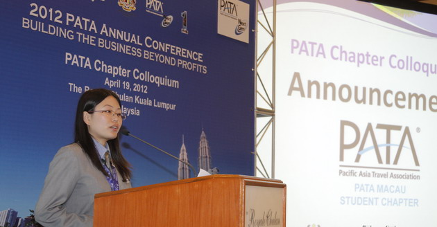 On 19 April, during the Chapter Colloquium of the Pacific Asia Travel Association’s (PATA) Annual Conference in Kuala Lumpur, Tourism Business Management Year 3 student, Ariel Lin announced the establishment of a PATA Macau Student Chapter as the Chairlady of the Student Chapter.