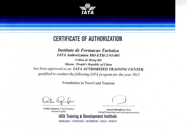 Since the1990’s, IFT has been an IATA authorised training center and the only center in Macao to offer IATA/UFTAA International Travel Agent Foundation Course. The programme was introduced to the local travel industry with a wish to provide them more chances to gain internationally renowned recognition.