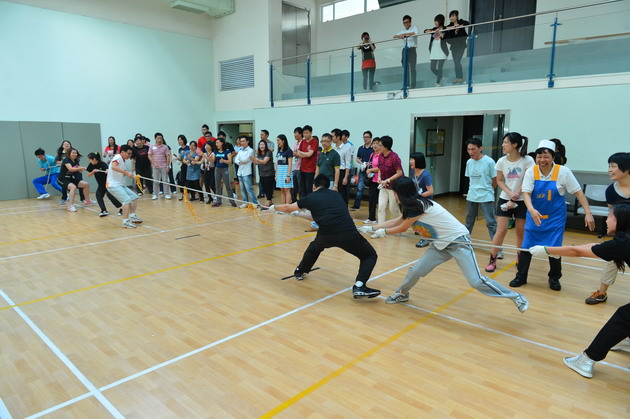spirit. Eight groups consisting of students and staff enrolled in the competition. During the contest, participants from each group pulled together on the rope with their ultimate power, sweats and laughter.
