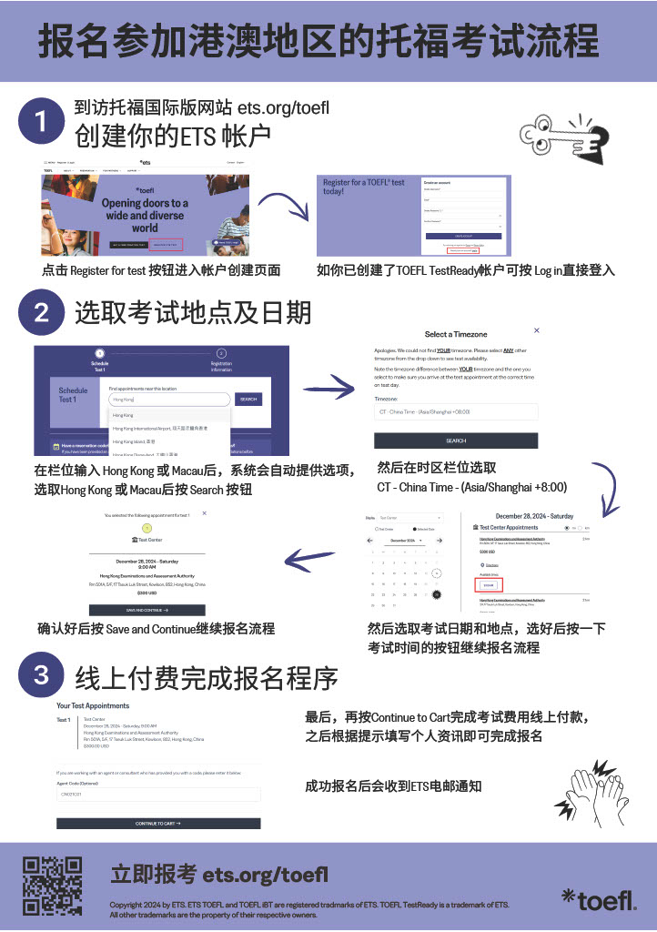 如你需要協助或想通過電話或郵件報名考試,可查閱https://www.ets.org/toefl/test-takers/ibt/register/how-to-register.html 。