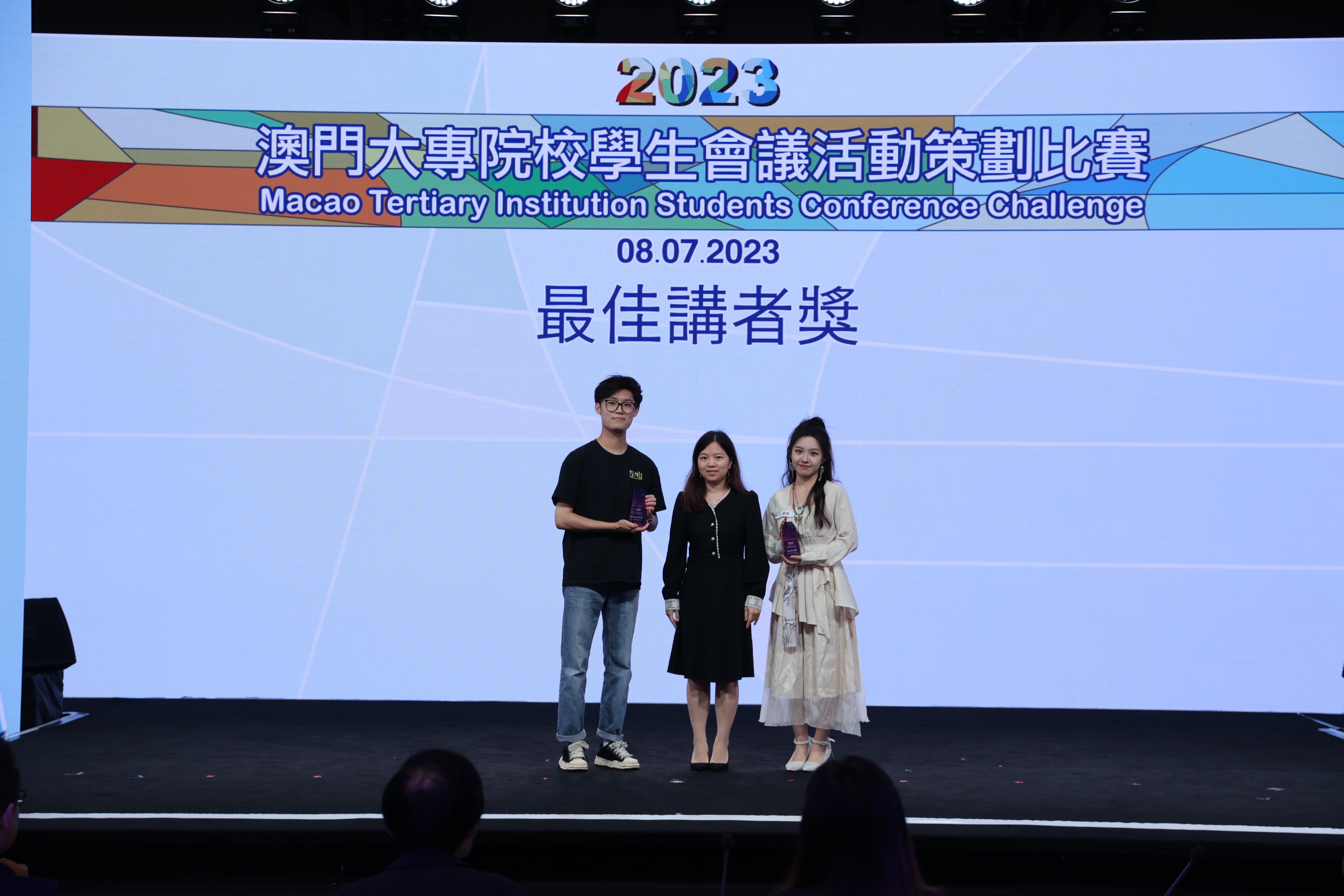 Two IFTM teams of students comprised of BSc Tourism Event Management programme achieved outstanding results in the 2023 Macao Tertiary Institution Students Conference Challenge organised by the Macao Convention & Exhibition Association. Team 1 won the 1st runner up and the best presentation design, while Team 2 was awarded merit for their work. Evan Huang from Team 1 was also given one of the two Best Presenter awards in recognition of his exceptional presentation skills among all the presenters in the competition. Team 1 will also represent Macao SAR to compete in the Asia-wide competition organised by AFECA Asia MICE Youth Challenge in November 2023 in Bangkok, Thailand.