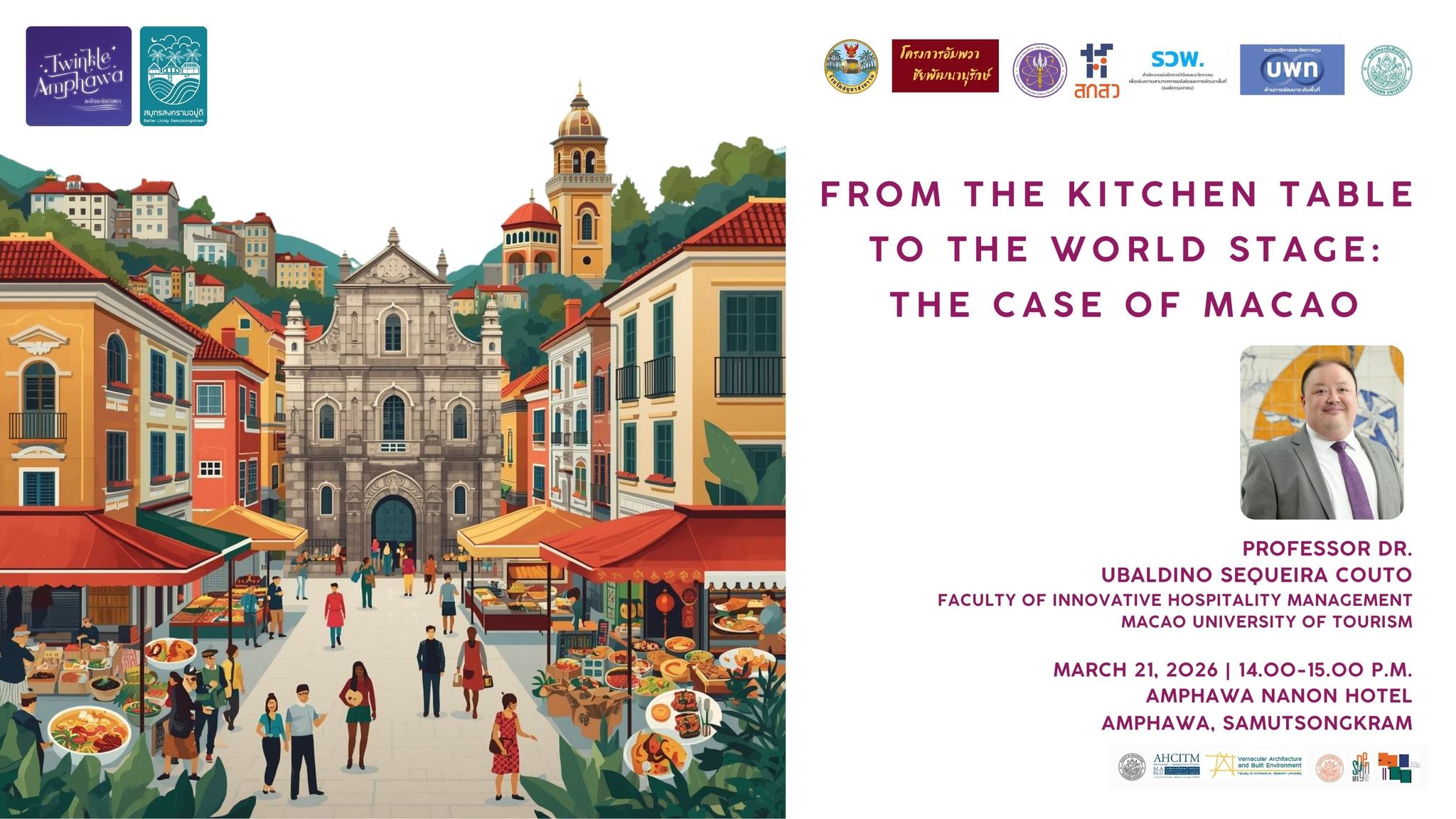 创新款待管理学院 - 旅游会展及节目管理课程主任高迪龙副教授,近日受邀前往泰国沙没颂堪,发表题为《从厨房餐桌到世界舞台:澳门案例》的主题演讲。