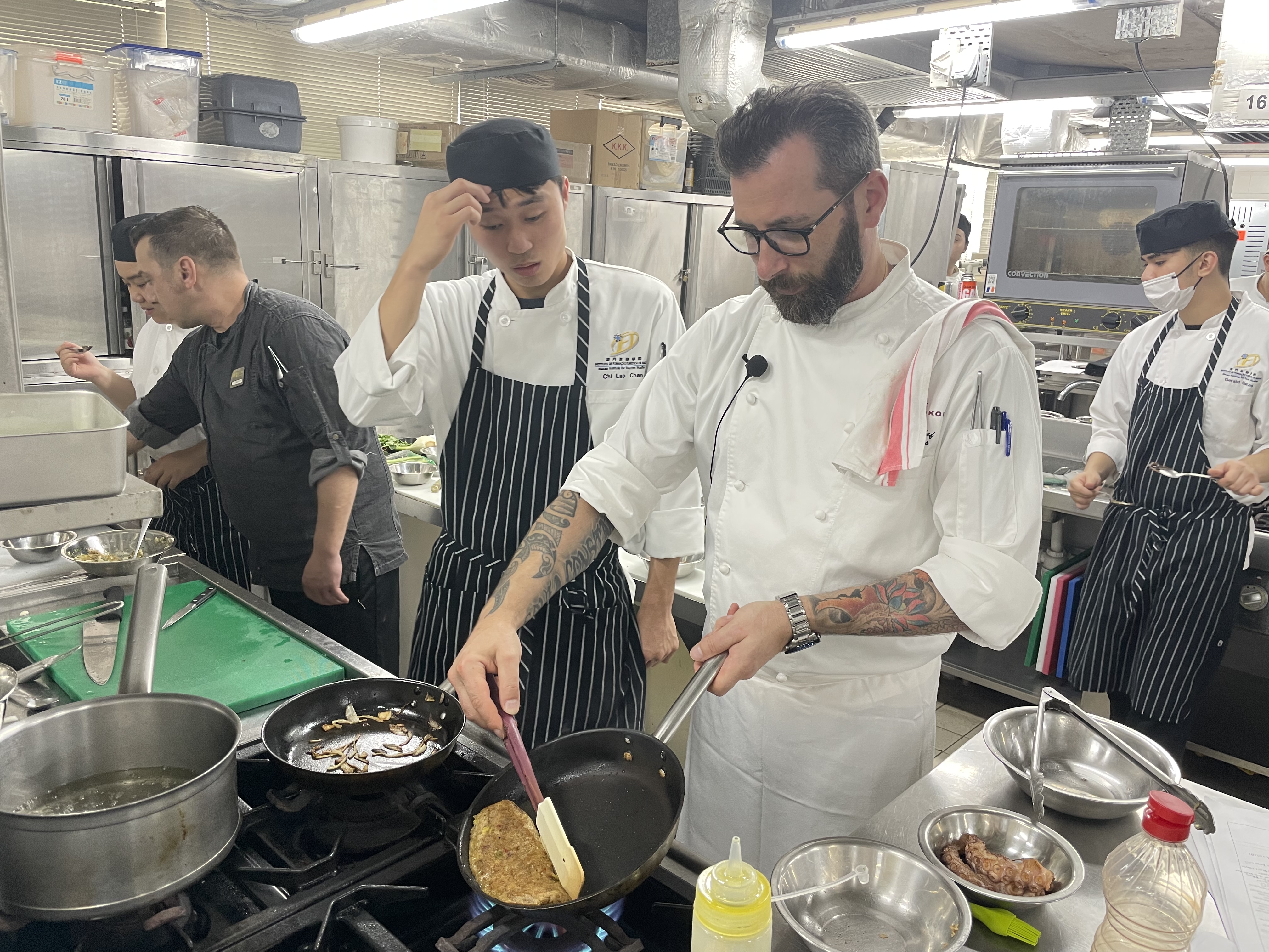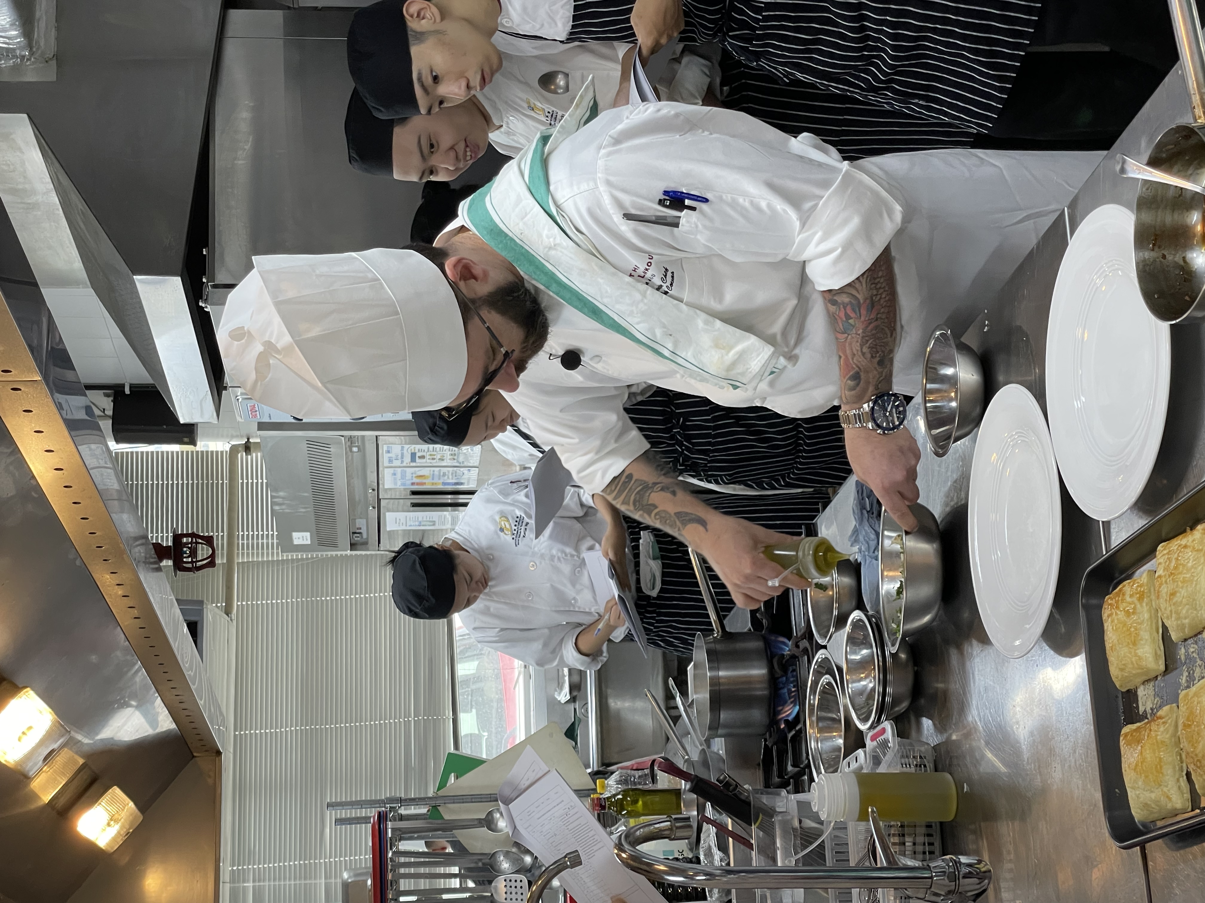 新八佰伴的傑出高級行政主廚 Miguel João Covas 先生受邀以當代葡國菜為主題,與其助手 Edgar Rodrigues師傅作精彩烹飪示範,向學生傳授他的烹飪專業知識。這內容豐富的課堂是專為我們廚藝管理三年級學生設計的菜單。