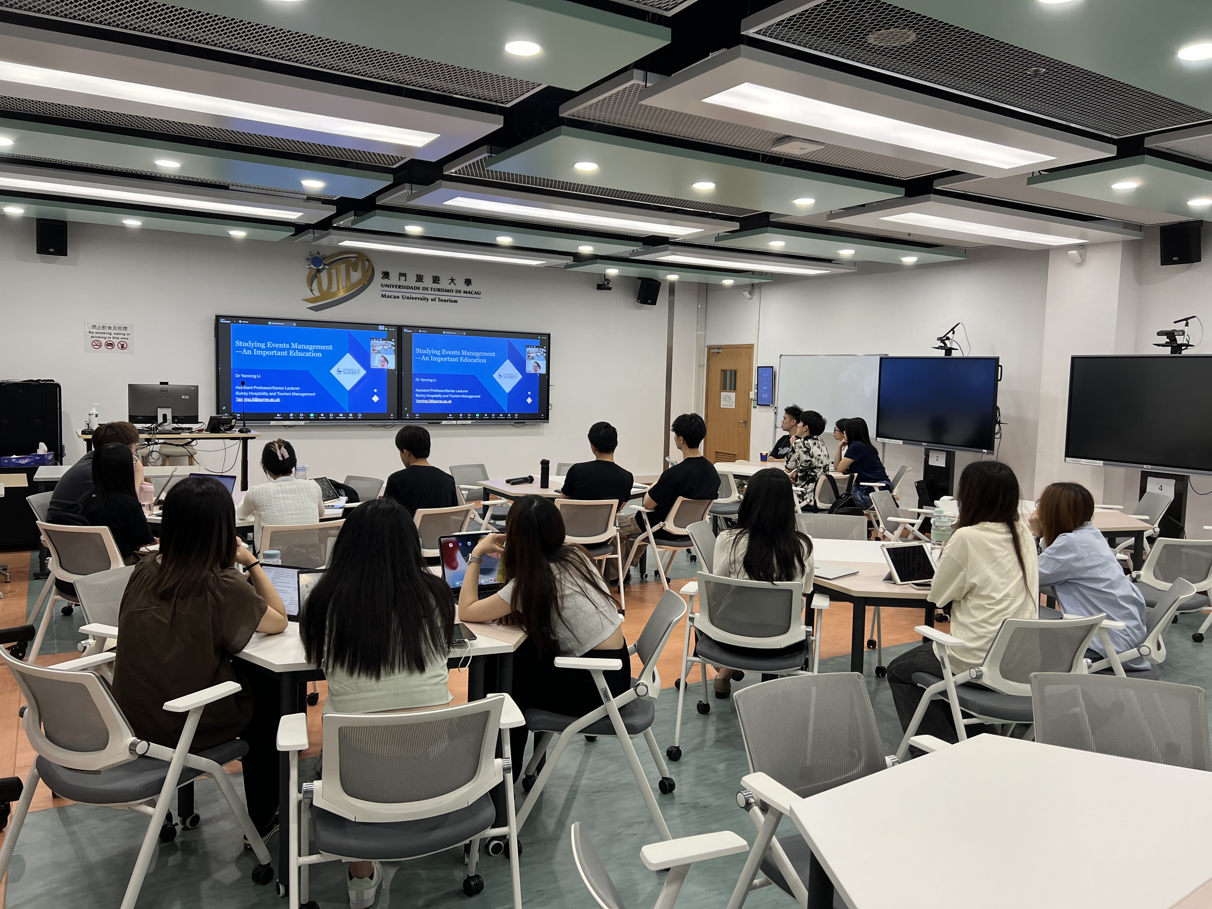 會展及盛事管理教育研究的重要性有時會被忽視,儘管它在建立行業最佳實踐中扮演著至關重要的角色。我們邀請來自英國薩里大學商學院的Li Yanning博士與學生討論有關“會展及盛事教育和最佳實踐”這一主題。李博士結合她作為會展及盛事領域的實踐者和學術界人士的經驗,向學生分享知識轉移的重要性,以及行業期望如何建立最佳實踐,最終塑造當今的基準和教育卓越標準。