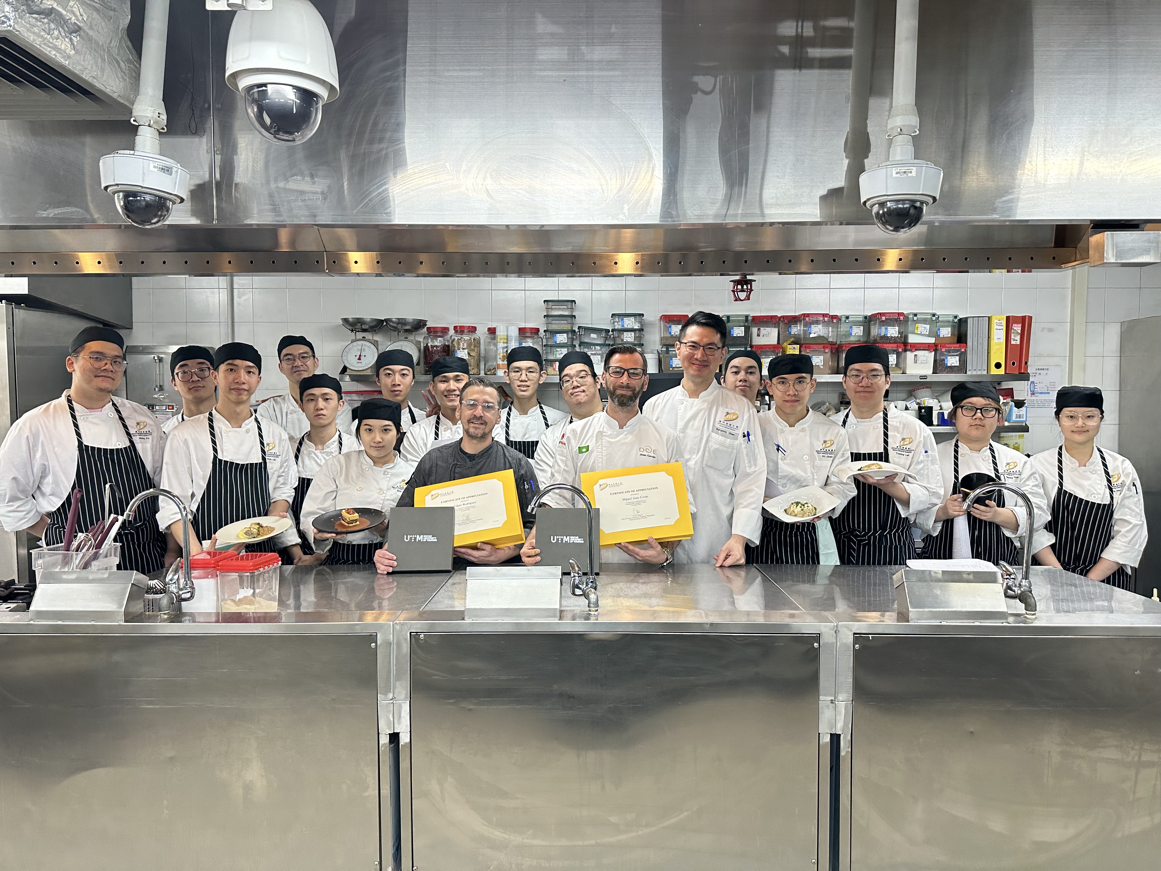 本校邀請來自澳門雅辰酒店副主廚Miguel Joao Covas,進行一場精緻的新派葡萄牙菜烹飪示範,並由Edgar Rodrigues廚師協助。這場愉快的課堂專為三年級廚藝管理學生精心策劃。