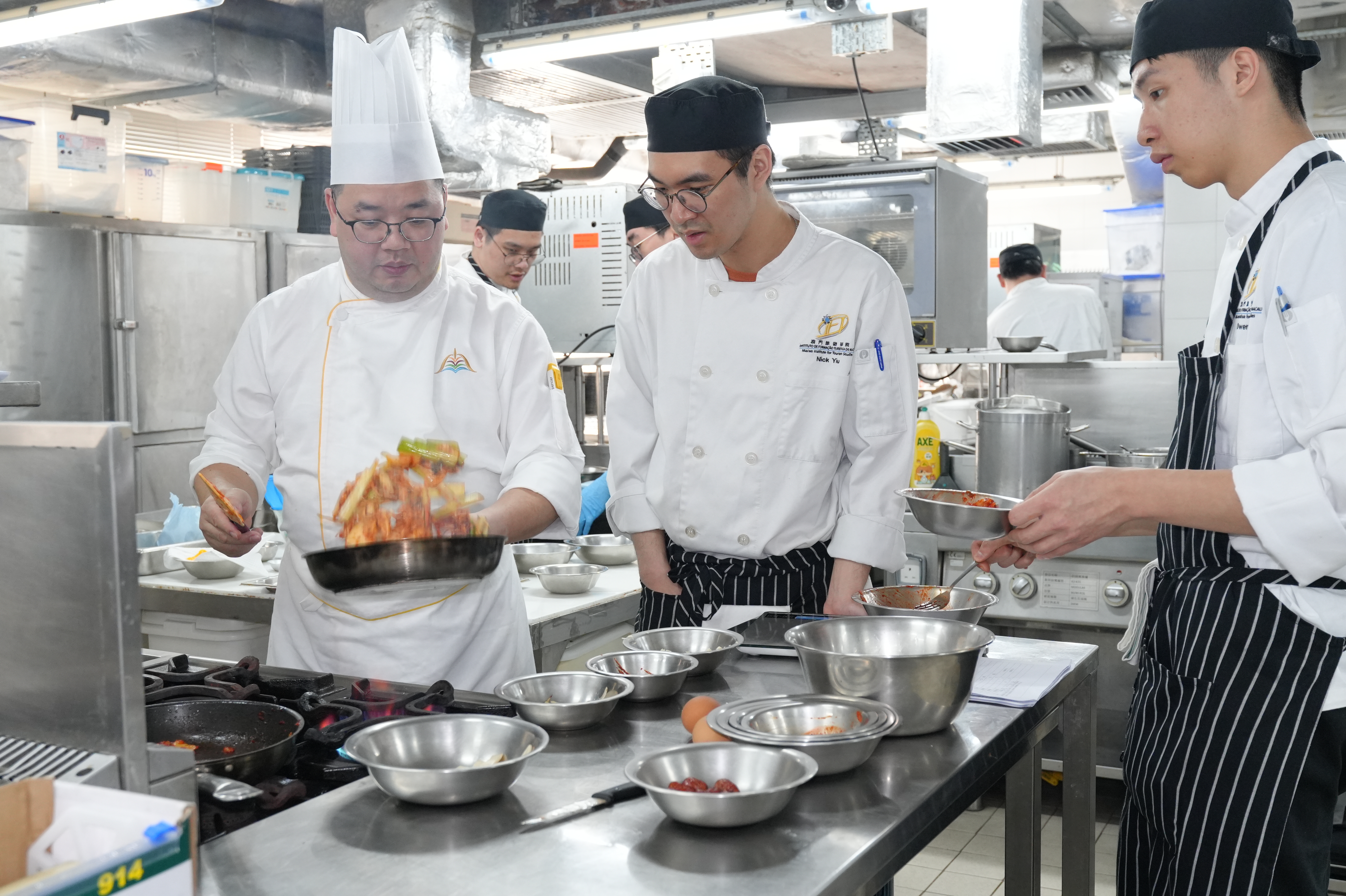 本校邀請來自銀河娛樂集團的副主廚Lai Chi Kit和Wan Chi Wai,進行一場展示韓國菜餚豐富傳統的烹飪示範,並由Annie Chio廚師協助。這場資訊豐富的課程專為三年級廚藝管理學生設計。