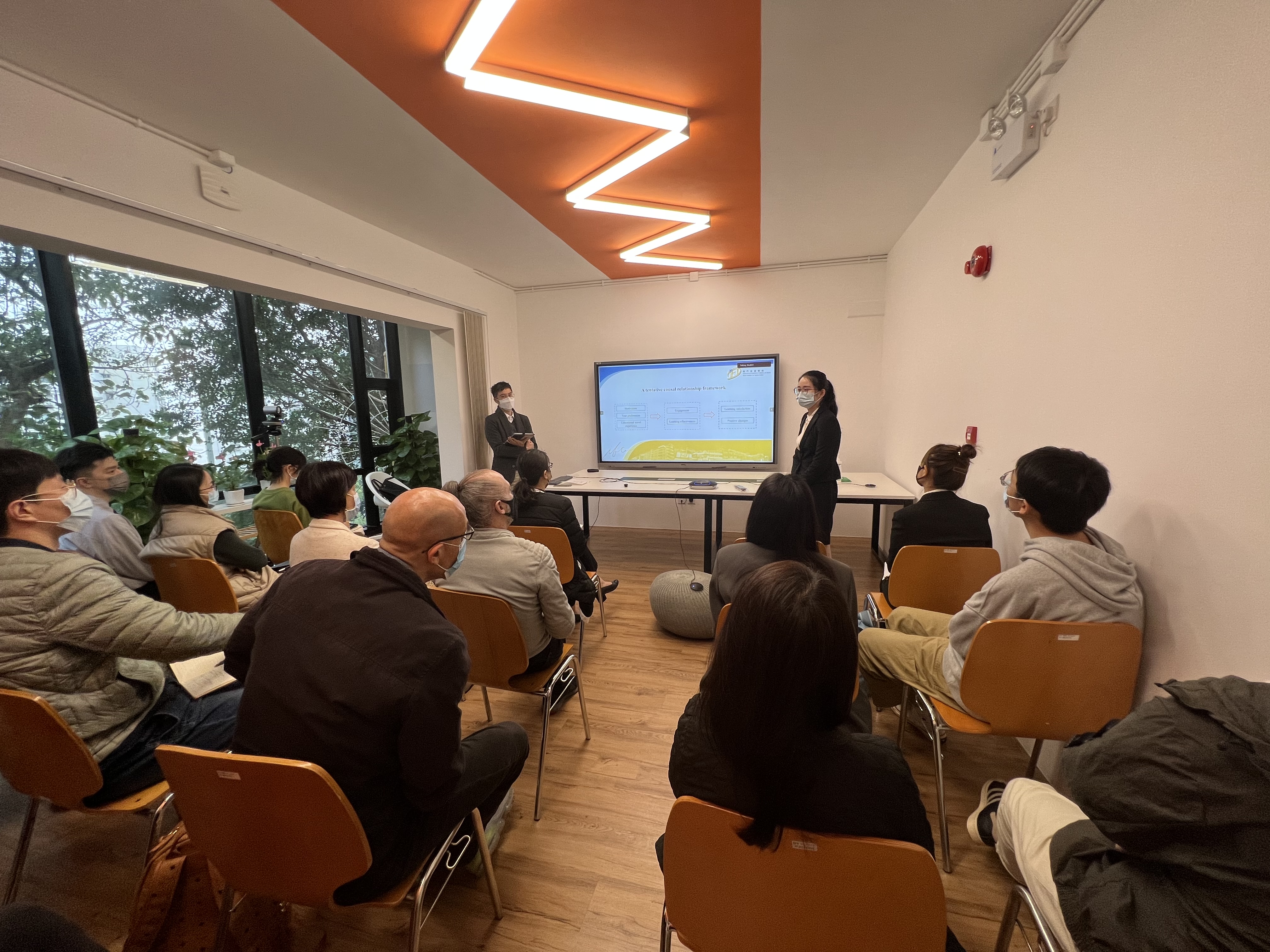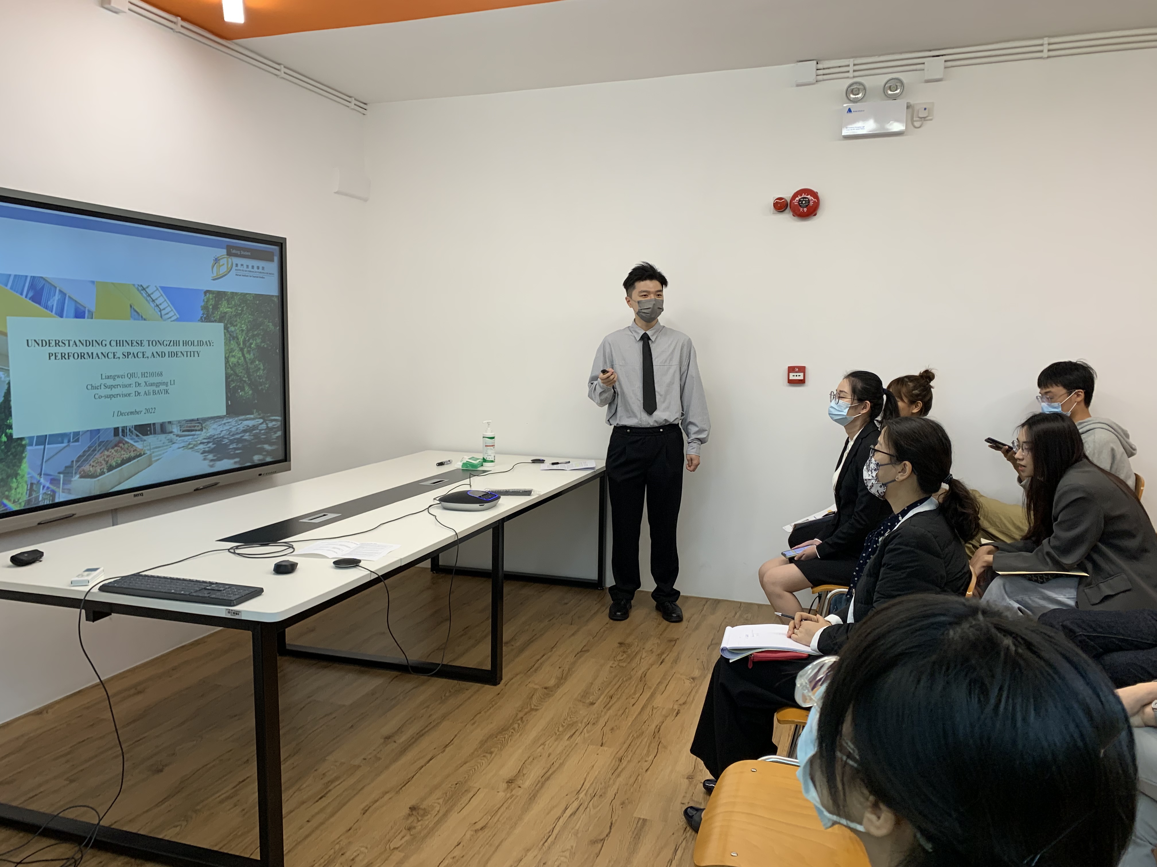 博士生科研研討會於2022年12月1日在氹仔校區構想實驗室會議廳舉行。三位博士生張杭珺、邱亮瑋、馮燕平向學院師生演說研究進展。