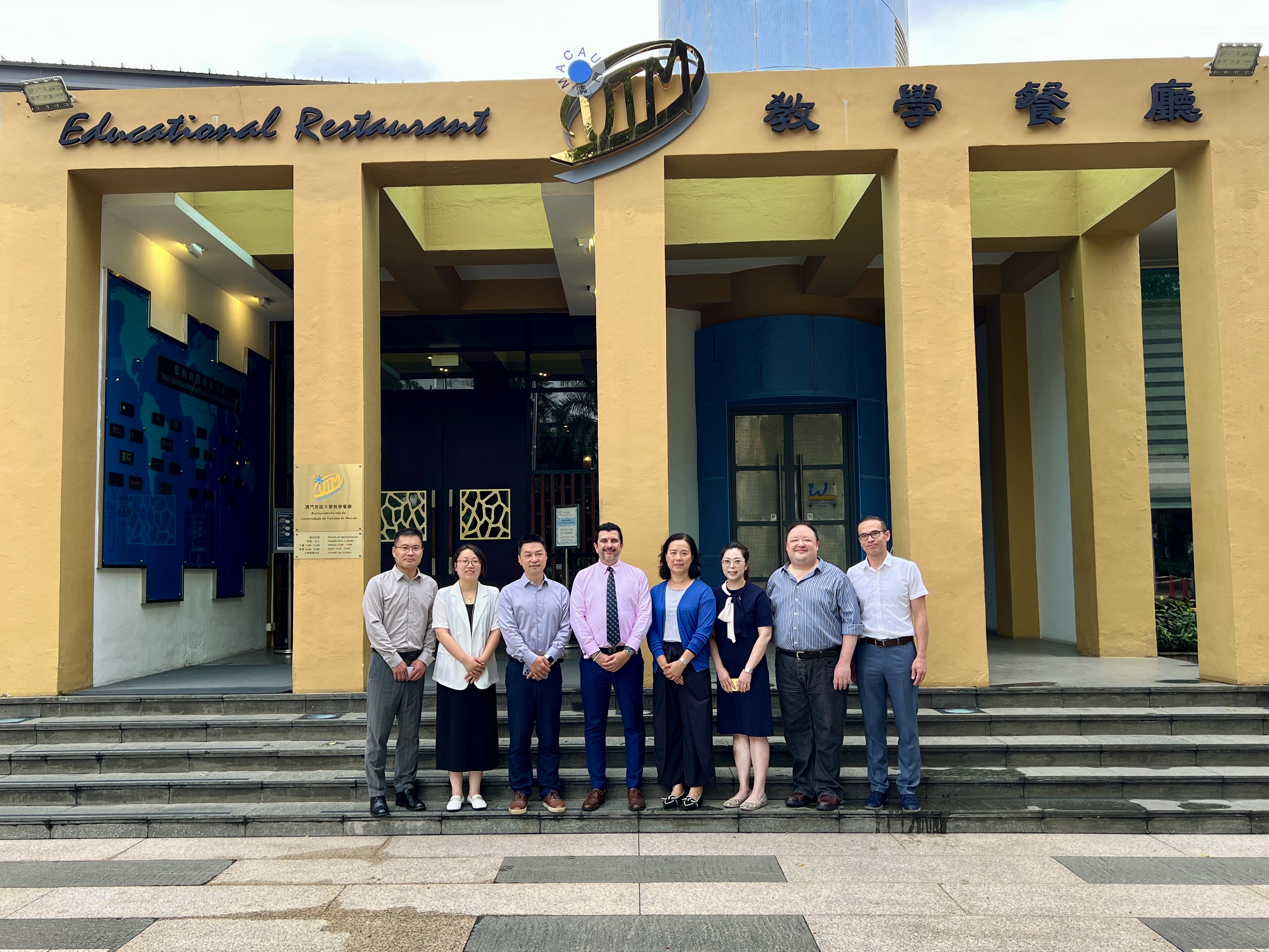 瑞士酒店管理大學(SHMS)校長 Patrick Taffin 和瑞士愷撒里茲大學(CRCS)副校長 Jorge Arnanz 在澳門旅遊大學副校長呂劍英博士的熱烈歡迎下,並與本學院的行政管理層會面。與會者包括創新款待管理學院院長 李頴詩博士、酒店管理課程主任 管潔琦博士、廚藝管理課程主任 黃燕妮博士、以及旅遊會展及節目管理課程主任 高迪龍博士。此外,瑞士教育集團(SEG)的代表也參加了此次會議,包括機構合作計劃主任 Hippo Ho 先生和澳門區招生部經理 Elvis Chan 先生。
