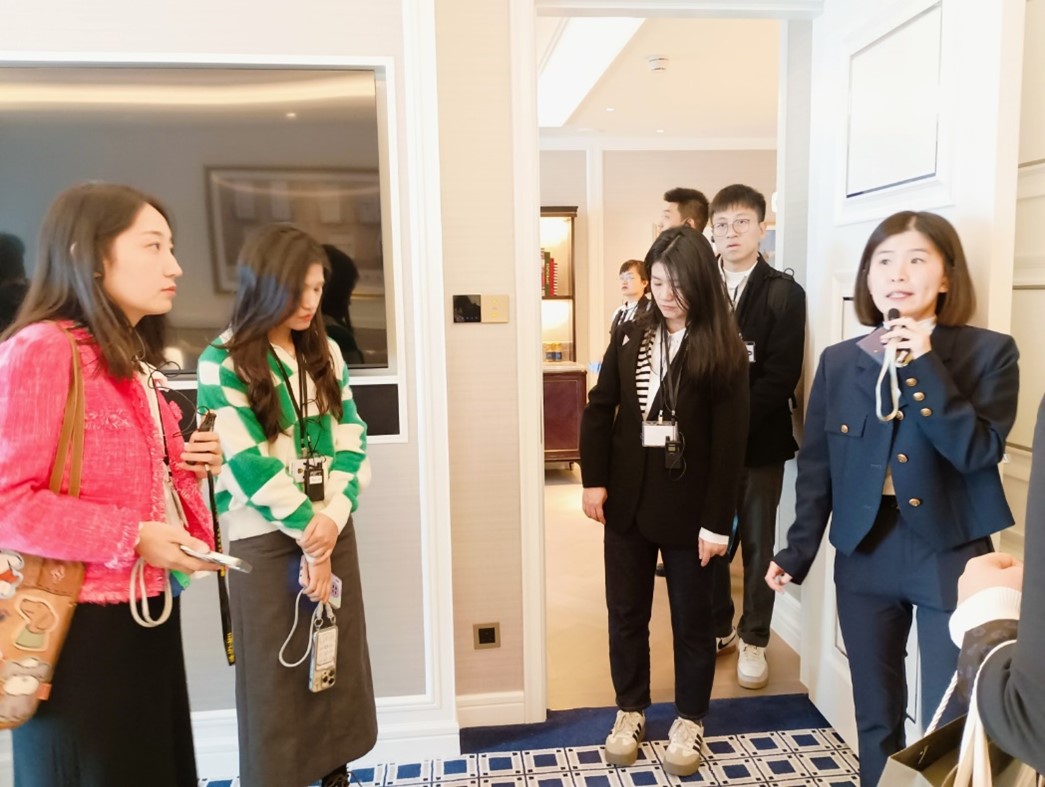 活動初始,UTM 工商管理博士班的學生深入參觀澳門倫敦人的「御匾名匯」,體驗兩種截然不同的房型。由酒店資深管家憑藉深厚的專業知識,進行了極為詳盡的講解。學生們得以直觀領略酒店基於對市場需求的精準洞察,如何通過精心設計的房型多樣化策略,全方位滿足不同層次、不同偏好客戶的需求。參觀全程,學生們展現出濃厚的興趣,積極主動地與酒店管家展開互動,從房型設計理念到服務配套細節,提出了一系列具有深度的問題,充分彰顯了他們對酒店運營及客戶需求匹配策略的強烈探索欲。