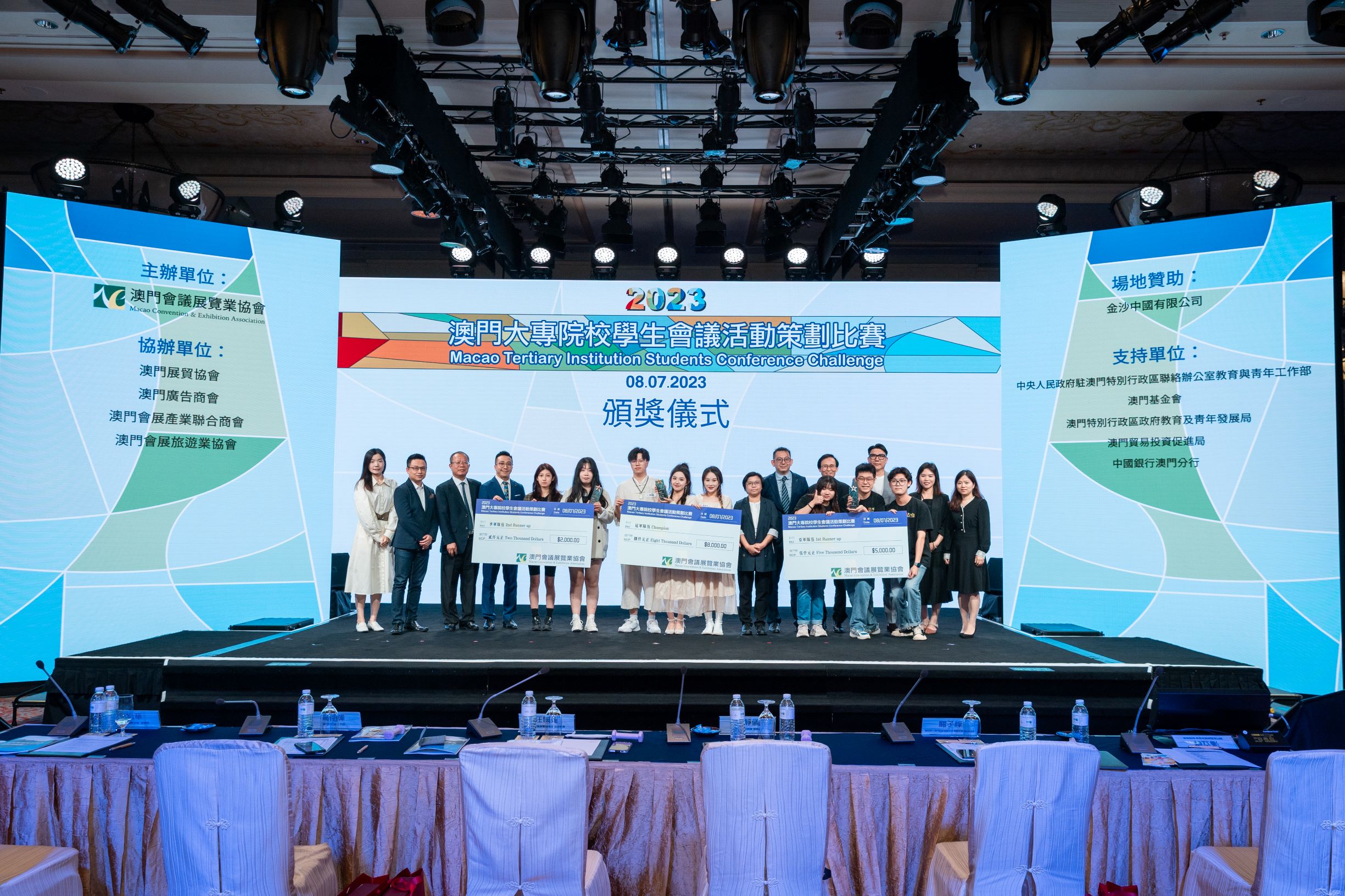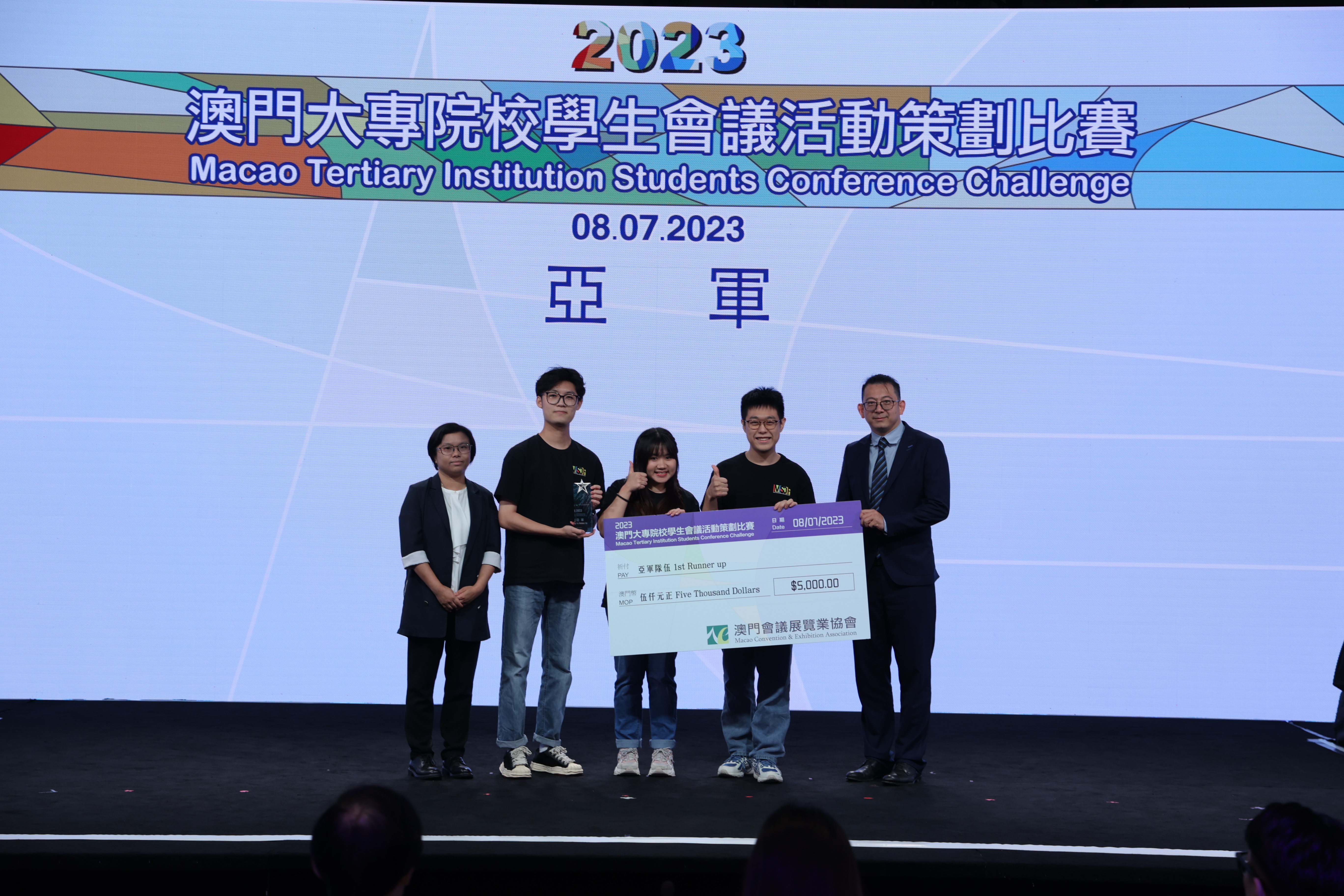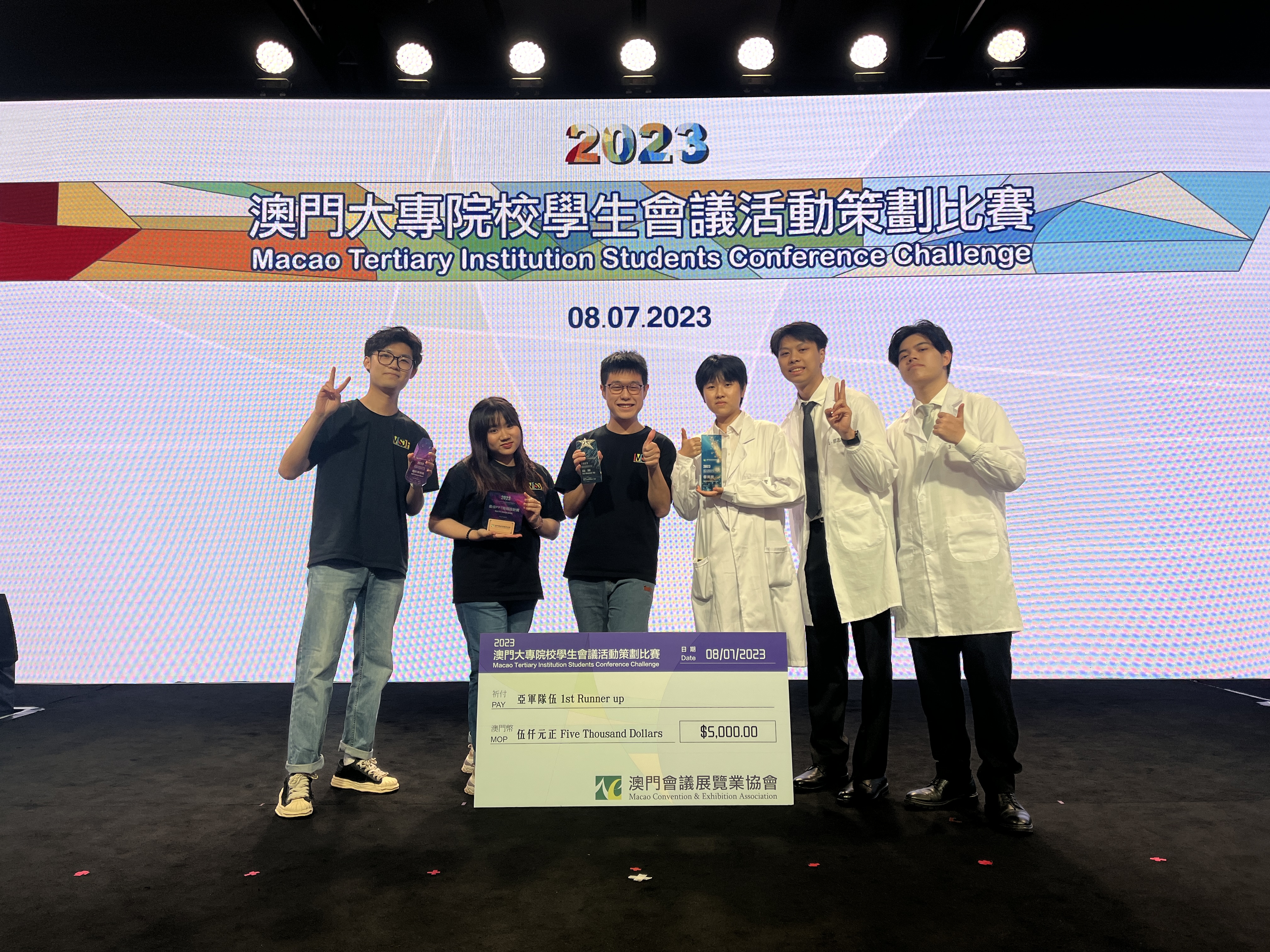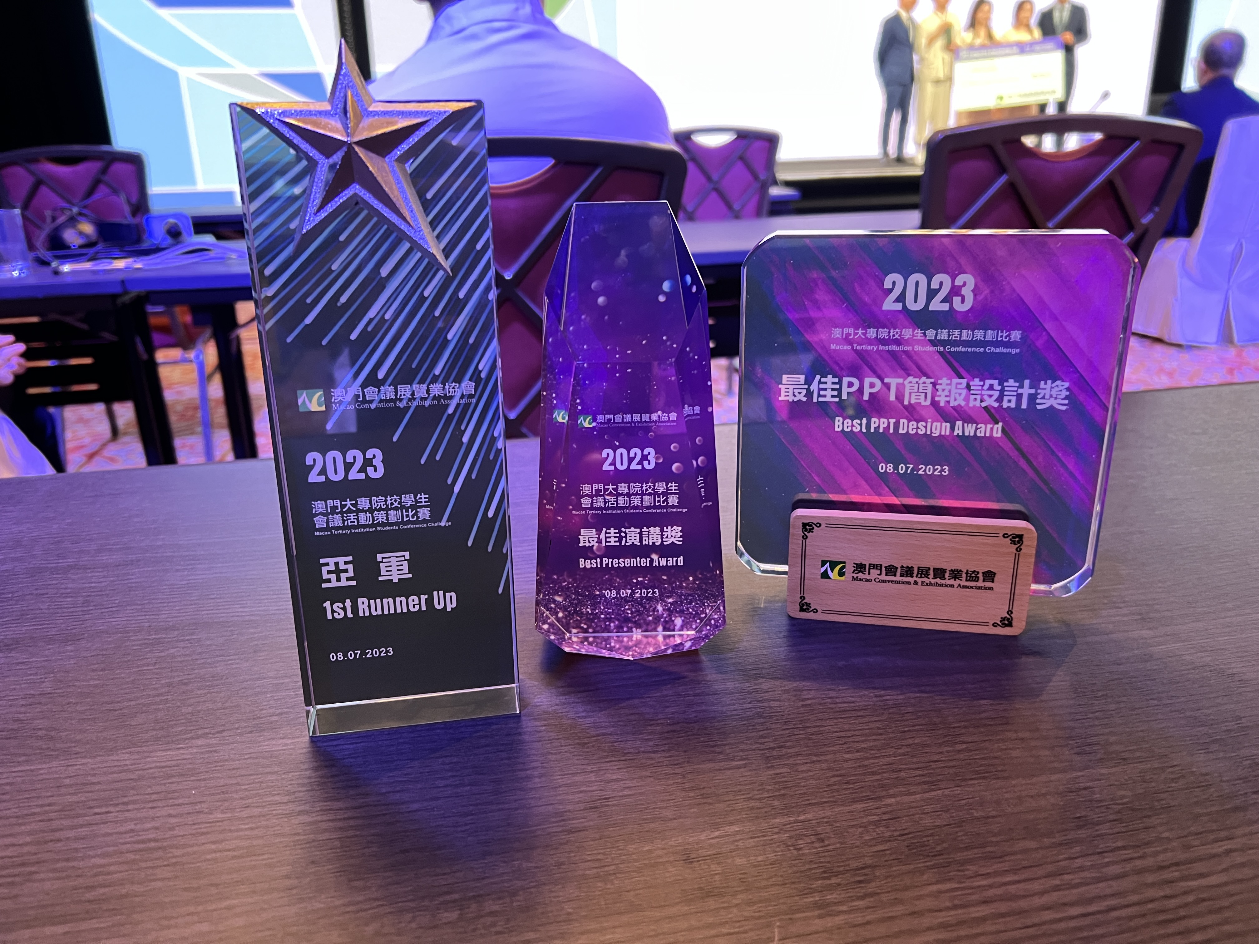 澳門旅遊學院旅遊會展及節目管理理學士學位課程的兩支學生隊伍,在澳門會議展覽業協會舉辦的「2023年澳門大專院校學生會議活動策劃比賽」中取得優異成績。 隊伍一榮獲亞軍及最佳演示設計獎,隊伍 二則獲得優異獎。 來自隊伍一的黃晨瑋同學還獲得了最佳演講者獎之一,以表彰他在比賽中出色的演講技巧。 隊伍一亦將代表澳門特別行政區參加2023年11月在泰國曼谷舉行由AFECA亞洲展覽會議協會聯盟亞洲會展青年競賽舉辦的亞洲範圍賽。