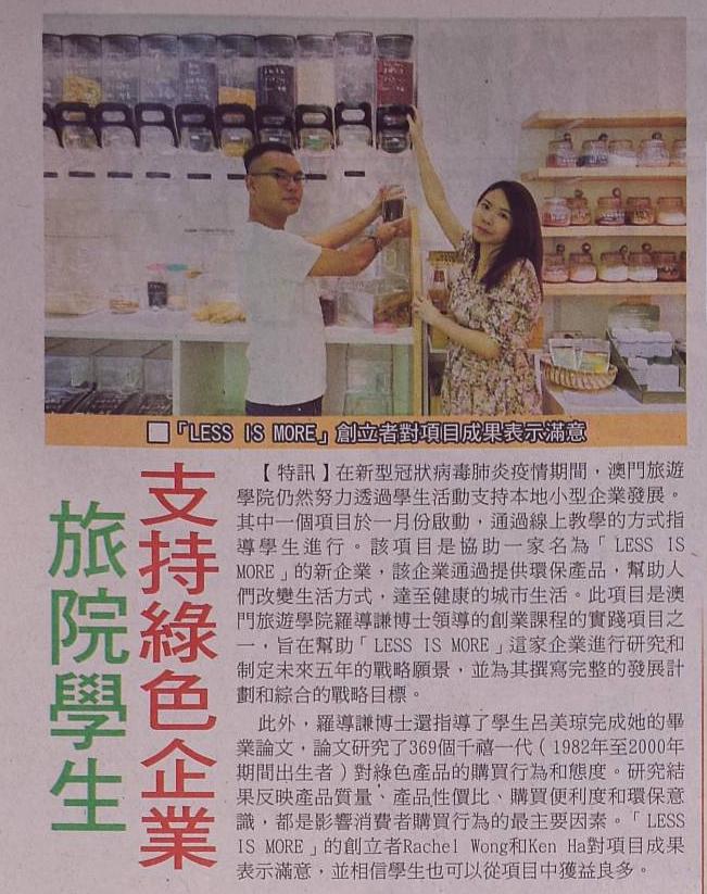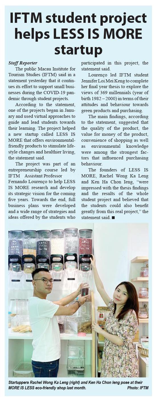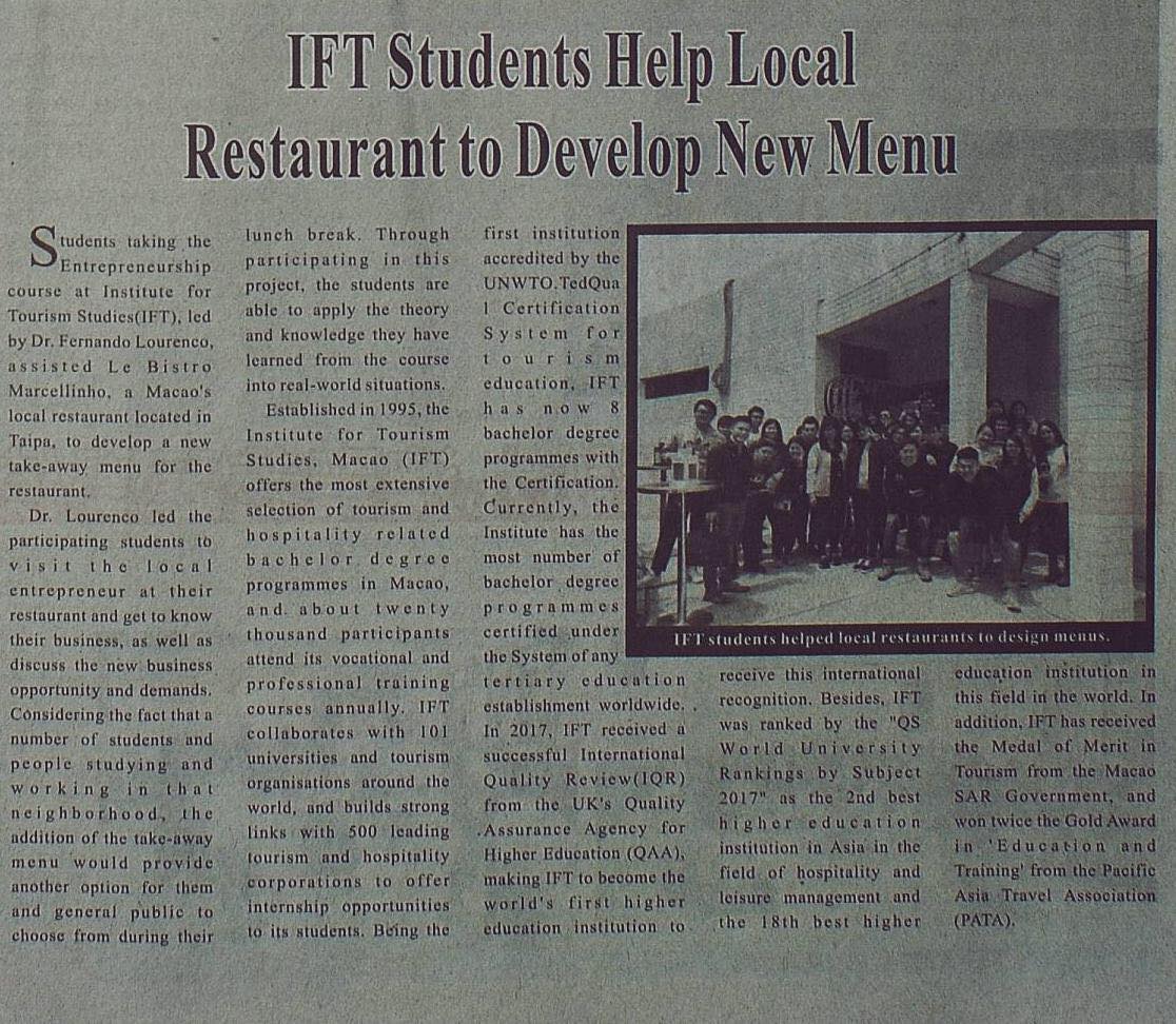 IFT Students Help Local Enterprise to Boost Market Exposure (濠江日報)