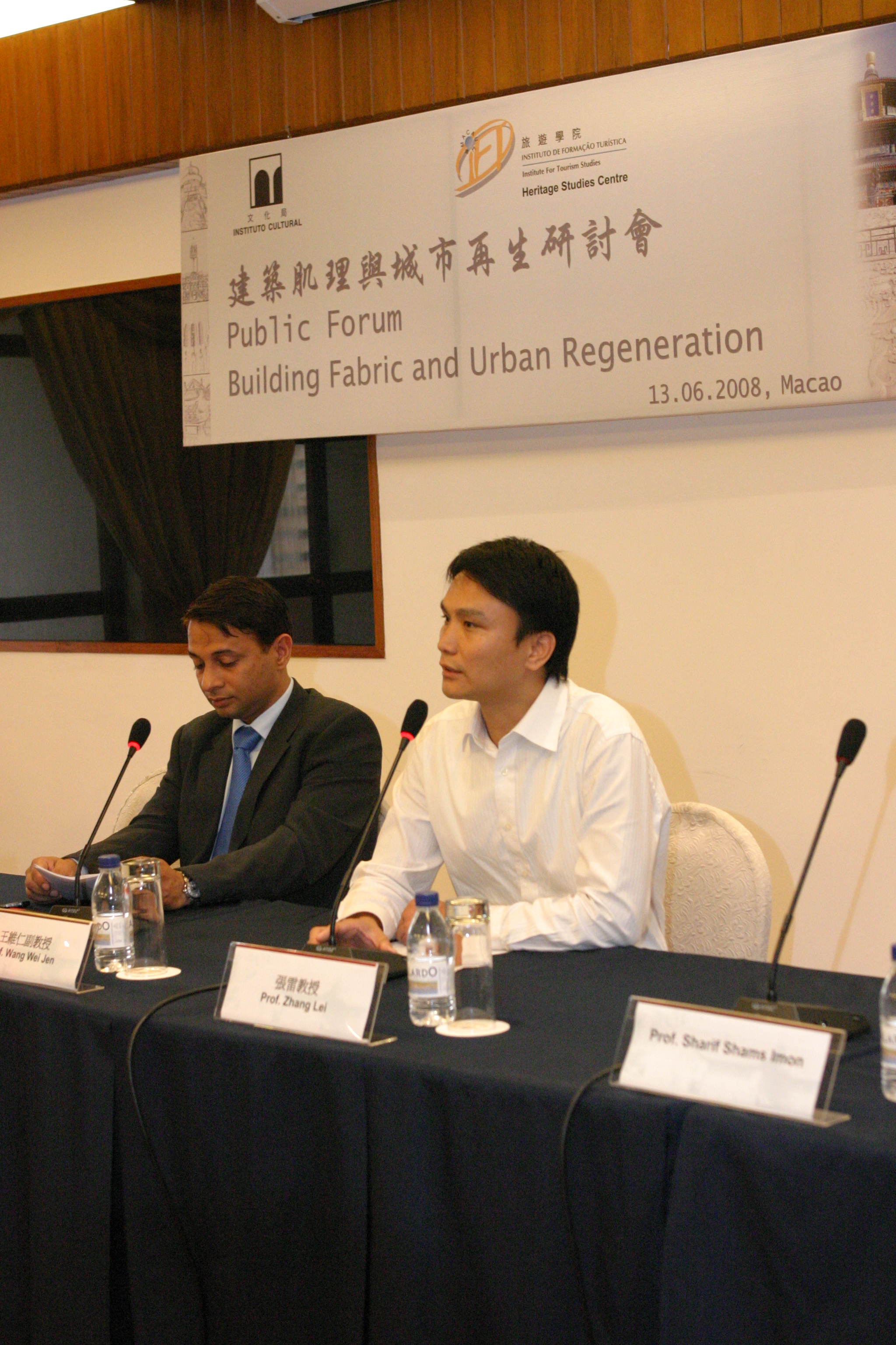 Dr Chang Shenglin, Associate Professor of the Graduate Institute of Building and Planning at National Taiwan University, and Mr Wu Jin-Yung, an Architect and the Project Leader in National Taiwan University, discussed issues related to the redevelopment of a run-down area in Taipei.